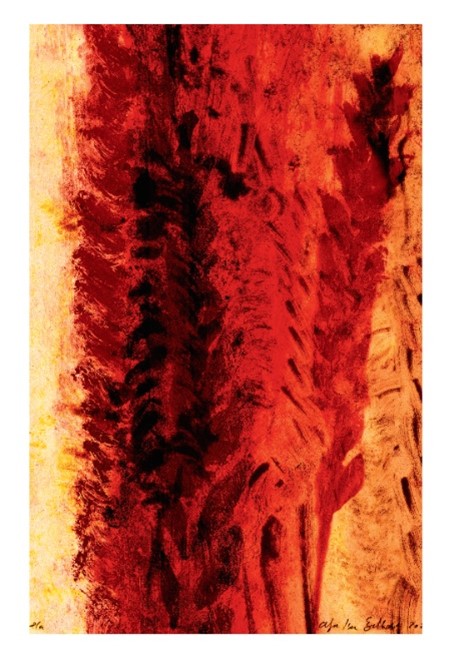 Det donerede litografi er i røde og gule farver og forestiller et kornaks.